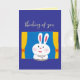 Denken Sie an Ihre Karte in blau mit Kaninchengrafik.