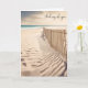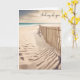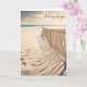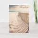 Holzzaun mit Sand und Ozean im Hintergrund, um an Sie zu denken. Alle Texte können bearbeitet werden.