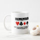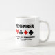 Sind Sie am Brückentisch schrecklich heruntergegangen, in der Größenordnung von -400, -500, -800, etc.? Lass Deinem wry bridge Player die Seite mit dieser Tasse, die die vier Karten-Anzug zusammen mit dem folgenden Erinnerung-Sprichwort enthält, an jeden Bridge-Spieler, der ein riskantes Gebotsverhalten oder ein schlechtes Spiel einnimmt: "Denk daran, dass es mindestens tausend Möglichkeiten gibt, am Bridge-Tisch Die". Keine Notwendigkeit, ein begeisterter Bridge-Spieler oder Bridge-Lehrer zu sein, um diese Klangqualität zu genießen, dass bridge in der Tat ein demütigendes Spiel ist!
