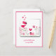 Lächeln Sie mit diesen hübschen Postkarten über niedliche kleine rosa Vögel und rosa Blume mit grünen Stielen und Blätter.
