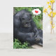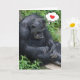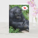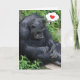 Schimpanse sitzt auf einem Felsen mit Denkblase und rotem Herz, um an Sie zu denken.