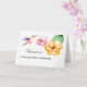 Wenn jemand Chemobehandlungen gegen Krebs durchläuft, kann diese Karte ihnen das Gefühl geben, nicht allein in dieser Schlacht zu sein. Die beruhigenden Farben symbolisieren, dass es nach einem Sturm immer Hoffnung gibt. Blume in hübsch rosa und goldgelb sind auf der rechten Seite, ein Kolibri befindet sich in der Nähe.