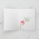 Teddy Bär, der ein Gedächtnis mit einer Karte mit rosa Tulpenbouquet und Polka Dot Bogen trägt