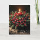 Kiefer- und Beerenkuchen mit einer leuchtenden roten Kerze zum Nachdenken an Sie zur Weihnachtszeit. Text kann geändert werden.