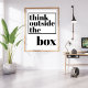 NewParkLane - Mit diesem lustigen, modernen Plakat, mit Zitat 'Think Outside the Box' in einer fett schwarzen Typografie auf weißem Hintergrund, verleiht Ihre Wohngestaltung etwas Spaß und Farbe.