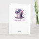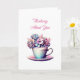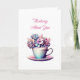 Lass einem Freund wissen, dass du über sie nachdenkst mit dieser hübschen Karte. Vintager antiker Teakup voller lila, rosa und blauer Blumen. AI Kunst generative Inhalte.