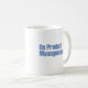 Diese Tasse hat das an Produkt-Managementlogo auf einer Seite und die Wörter, "horizontal zu denken, optimieren vertikal" auf der Rückseite.