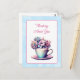 Lass einem Freund wissen, dass du über sie nachdenkst oder verpasst sie mit dieser hübschen Karte. Vintager antiker Teakup voller lila, rosa und blauer Blumen. AI Kunst generative Inhalte.