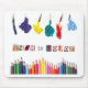 bunte Stifte und Aquarelle in den Linien mit denken im Farbtitel. Optimistische Annäherung.
