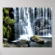 Poster mit einem Schimpansen und Wasser fallen Aquarellkunst. Der Schimpanse hat eine Pose und Ausdruck, wie es denkt und fragt sich über etwas von Elenne Boothe