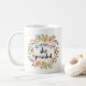 Die inspirierend Tasse für Frauen, die die Welt verändern, enthält das Zitat "dennoch, beharrte sie" in der Schrift mit Pinsel, die in einen Blumenkranz in Aquarellfarben in schieren Pastelln eingezeichnet ist.