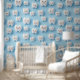 Dental Clinic Wanddekor weiß lächelnde Gesichtshaut auf Cyan Hintergrund. Lösungen für die Inneneinrichtung.