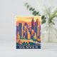 Denver Reise Postkarte. Blick auf die Skyline der Stadt in lebhaften, orangefarbenen Farben.