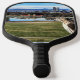 Ein roter Schwanzfalken, der in einem Schuss Denver, Colorado auf einem Paddel-Paddel landet.