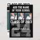 Ein einfacher eleganter Entwurf in Schwarzweiss für ein Abschluss-Party. Addieren Sie leicht Ihre eigenen Fotos und fertigen Sie mit Ihrer Uniform-/Jerseyzahl besonders an. Vervollkommnen Sie für den Schulathleten. Wenn Sie nicht genau finden, was Sie wollen, bitte in Verbindung treten mit uns für Kundenbezogenheit (zum Beispiel in den Farben Ihre Schule!).