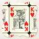 Ein altes King of Hearts Playing Card Muster auf schwarzem Hintergrund.