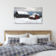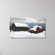 Eine winterliche, ländliche Szene mit einem schneebedeckten, verfallenen, alten, roten LKW, der in der Nähe einer Ramschkabine nahe Sandpoint, ID sitzt. Fügen Sie Ihren eigenen Text hinzu.