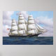 Es handelt sich um eine überarbeitete und verbesserte Reproduktion eines Clipschiffs, das aus einer Kopie des von Antonio Jacobsen inspirierten Ölgemäldes stammt, einem zahllosen nautischen Maler aus den späten 1800er und frühen 1900er Jahren. Wir erweiterten das Bild und redigierten es mit AI-Tools und Fotoshop, um Details und Dynamik wiederherzustellen. Das Kunstwerk trägt den Titel The American Clipper Flying Cloud at Full Sail. Donald McKays von Ostboston gebaute extreme Clipper, die Flying Cloud, zerschmetterte die Seestrecke New York nach San Francisco in 89 Tagen, 8 Stunden, und segelte unter Captain Josiah Creesy mit seiner Ehefrau Eleanor Creesy als Navigator an den Charts. Das Schiff segelte als Teil der Goldrausch-Ära nach Kalifornien. Später war sie für Australien und den Holzhandel gebunden. Schließlich traf sie ihr Schicksal, als sie am 19. Juni 1874 auf der Beacon Island Bar, Saint John, New Brunswick lief. Dieses Kunstwerk ist im klassischen Stil von Antonio Jacobsen, dem produktiven Chroniker von Schiffen, der mit unübertroffener Genauigkeit Schiffskörper, Rigging und Staat auf See eroberte.