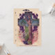 Dieses altmodische Bild zeigt einen Baum in einem Kreuz, umgeben von Veilchen, Lilien und einem Vogel. Reprint auf Leinwand mit Bibelvers: John 14:6. Schöne Christliche Einladung zu einem Osterfest.