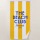 Das Strandhandtuch des Beach Club ist perfekt für Ihren Strandurlaub.. gelbe Cabana-Streifen mit lebendigen blauen "The Beach Club"-Buchstaben. Personalisieren Sie sich mit den Details Ihrer Strandreise... Jahr und Strand Ziel. Ideal für einen Strandausflug mit Familie oder Freunden oder einen Bachelorette im Beach Club oder als Memento für einen vergangen Ausflug. Matching Accessoires in der Beach Club Sorrento Yellow Cabana Stripe Collection.