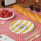 Der Beach Club Toast auf dem gelben Küstenstrich Pappteller