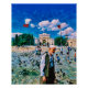 Der belebte Stadtplatz mit Menschen und Flaggen Poster