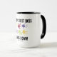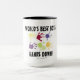 Rote blaue, grüne Hand mit den besten der Chef-Händen Wort-Sprichwort Welt stellt unten eine niedliche Kaffee-Tasse her.