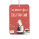 Car Air Freshener. Der weltbeste Elektriker arbeitet an einer Verkabelung. Roter Hintergrund.