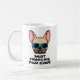 Diese französische Bulldogkaffee-Tasse ist das perfekte Vatertagsgeschenk für jeden französischen Vater. Das Design zeigt eine Cartoon-Style-Abbildung eines hellbraunen französischen Bulldoggen, der eine Sonnenbrille trägt, mit der Aufschrift "Bester französischer Vater aller Zeiten!". Das Design ist auf beiden Seiten der Tasse gleich, und der Wortlaut kann nach Belieben geändert werden.