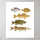 Kunstdruck von großen Süßwasserfischen von Fischern. Von den ursprünglichen Aquarellen von Thom Glace. Von oben nach unten: Muskie, Smallmouth Bass, Walleye, Crappie & Pumpkinseed Sunfish