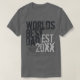 Der beste T - Shirt der Welt, Personalisiert mit dem Jahr etabliert. Cooler Grunge bedrückter Stil mit Graffiti-Text-Hintergrund und beschreibenden Worten über Papa. "cooler Vater, phantastisch, mein Freund, etc." Großes Vatertagsgeschenk oder neuer Papa-T - Shirt.