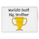 Eine große Goldtrophäe, die "Champion" liest und Text, der "den besten großen Bruder der Welt" auf Shirts des großen Bruders, Tassen, Taschentaschen, Knöpfen, Schlüsselanhänger, Karten und mehr liest!
