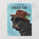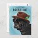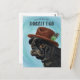 Niedlicher Hund Thema Vatertag oder Geburtstagskarte mit handgemalten Illustrationen eines Mops Welpen mit einem braunen Fedora Hut. In dem Text oben steht: "Du bist der beste Hundepapa."