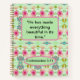 Bezaubernder Eclectic Garden: Diverse floral Beauty Notebook Beschreibung: Die Einführung des "Enchanting Eclectic Garden: Diverse Floral Beauty Notebook", eine wunderschön gestaltete Zeitschrift, perfekt für Ihre Gedanken, Notizen und Inspiration. Das Cover zeichnet sich durch ein atemberaubendes Blumendesign in Verbindung mit einem sinnvollen Bibelvers aus, was es zu einem ansprechenden Begleiter für tägliche Reflexionen oder kreatives Schreiben macht. Cover Design: Blumenmotiv: Das Notizbuch präsentiert eine vielseitige Auswahl an verschiedenen Blume und schafft eine lebendige und einladende Ästhetik, die die Schönheit der Natur widerspiegelt. Hintergrund: Ein beruhigender grüner Hintergrund verbessert die Blumenelemente und schafft so eine beruhigende Kulisse für den Text. Textelemente: Bibelverse: Oben auf dem Cover steht der Vers "Er hat zu seiner Zeit alles schön gemacht.", zentriert, elegant gerahmt mit einem Farbrahmen, der eine Touch von Eleganz hinzufügt. Referenz: Am unteren Rand wird "Ecclesiastes 3:11" mit ähnlichen Attributen angezeigt, wodurch ein zusammenhängendes und ausgewogenes Design gewährleistet wird. Insgesamt Eindruck: Das Notizbuch "Der bezaubernde eklektische Garten" ist nicht nur ein praktisches Element, sondern ein wunderschöner Ausdruck von Glauben und Kreativität. Dieses Notizbuch ist ideal für Journalisten, Notizen oder als nachdenkliches Geschenk für Freunde und Angehörige geeignet und fördert Reflexion und Inspiration. Stellen Sie sich vor, dieses bezaubernde Notizbuch zu öffnen, in dem die Schönheit der Natur auf kraftvolle Weisheitsworte trifft und Sie mit jeder Seite inspiriere! Entdecken Sie die gesamte Produktpalette unserer Achempong Zazzle Kollektion und finden Sie das passende Notebook für Ihre Anforderungen. Liebe dieses Design? Teilen Sie es mit Ihren Freunden und Ihrer Familie!