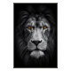 Ein auffallendes Porträt eines Löwen mit durchstechenden, gelben Augen, die auf der Kamera verschlossen sind, der Power, die Majestät und eine bezwungene Präsenz ausstrahlt. Die Details der Mähne und des Pelzes heben ihre wilde Kraft hervor.