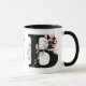 Diese Kaffee-Tasse hat zwei Monogramme, eins auf Front und andere auf der Rückseite. Die mutige schwarze Initiale wird mit rosa Blumensprays verziert. Um den Buchstaben zu ändern, "fertigen" Presse besonders an; wählen Sie "Text" und dann "redigieren Sie Text".