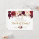 Werden Sie meine Trauzeugin Card mit bordeauxrotem Marsala Blumendesign. Ideal für Ihre romantische Herbsthochzeit.