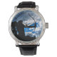 Uhr, Klassische Damenuhr mit schwarzen Lederarmband