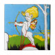 Kleiner blonder, kupidähnlicher Cartoon-Charakter mit Flügeln, die sich den Bogen knacken. Illustration des italienischen Karikaturisten Antonio Rubino aus dem Cover von Maggiolata, 1906.