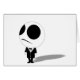 Groß mit Augen und mit einem schwarz-weiß Anzug mit Bogen Krawatte. Weißer Hintergrund.