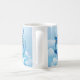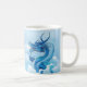 Tasse des Kaffees in einem heftigen chinesischen Drachen in indigoblau-weiß-farbenen Tönen, die aus den Wolken hervorgehen