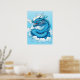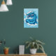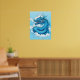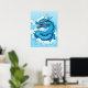 Poster in einem erbitterten chinesischen Drachen, in den Farbtönen indigoblau und weiß, aus den Wolken hervorgehen