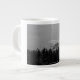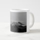 Ein Schwarz-Weiß-Foto des Berges Rainier. Im Vordergrund sind Baumreihen, und am Fuß von Rainier sind Hügel. Hinter dem schneebedeckten Vulkan verbirgt sich eine große, interessant geformte Wolke. Für einige sieht es wie eine antike Darstellung eines Raumschiffes aus, für andere ist es eine menschliche Form. Wie sieht die Wolke für dich aus? Image Copyright ©2023 Kimberly J Tilley. zazzle.com/store/developingnature