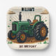 Der coole Traktor des Kinderretro-Jungen 1. Geburt Pappteller