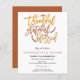 Dankbar Grateful gesegnet Erntedank Dinner Einladung. Eine preisgünstige SMALLER 4.5" x 5.6" Alternative. Erhältlich in einem SEMI GLOSS 110lb CARD STOCK oder einem SATIN FINISH 80lb THINNER PAPIERSTOCK. Umschläge sind optional. Inspirierend Worte Dankbar, Dankbar, Gesegnet in einem eleganten Skript in Herbstfarben sind an der oberen Hälfte, und die Details sind unten auf einem weißen Hintergrund. Personalisieren Sie den Text einfach mit Ihren Daten.
