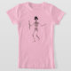 Ein elegantes, weißes Skelett wird in einer dynamischen tanzenden Pose eingefangen, mit einem klassischen schwarzen Top Hut, einer stilvollen Krawatte aus schwarzem Bug und einem schwarzen Stock, der in der rechten Hand gehalten wird. Die Figur steht auf einem dunkelweißen Hintergrund und betont ihr sauberes, raffiniertes Aussehen.