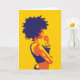Afrocentric Frau in den glänzenden Farben denkend an ihren nächsten Schritt.