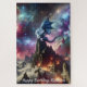 Ein fantastisches Fantasiebild eines silberblauen Drachen auf einem Berggipfel, gegen eine Galaxie aus Sternen und Nebel. Ideal für alle, die Fantasie und Drachen Lieben. Der unten stehende Text kann entfernt oder als Geburtstagsgeschenk verlassen werden.