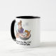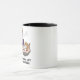 Eine humorvolle Tasse mit einer müden Frau, die hart an ihrem Schreibtisch arbeitet, während ihre verwöhnte Katzenlounge in Luxus mit der Überschrift "Ich arbeite hart, damit meine Katze ein besseres Leben haben kann.
