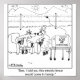 Ziegen auf einem heißen Feld sitzen in Liegestühlen vor einer Klimaanlage, die an einen elektrischen Zaun angeschlossen ist, und sagen: "Sehen Sie, ich habe Ihnen gesagt, dass dieser elektrische Zaun praktisch sein würde."